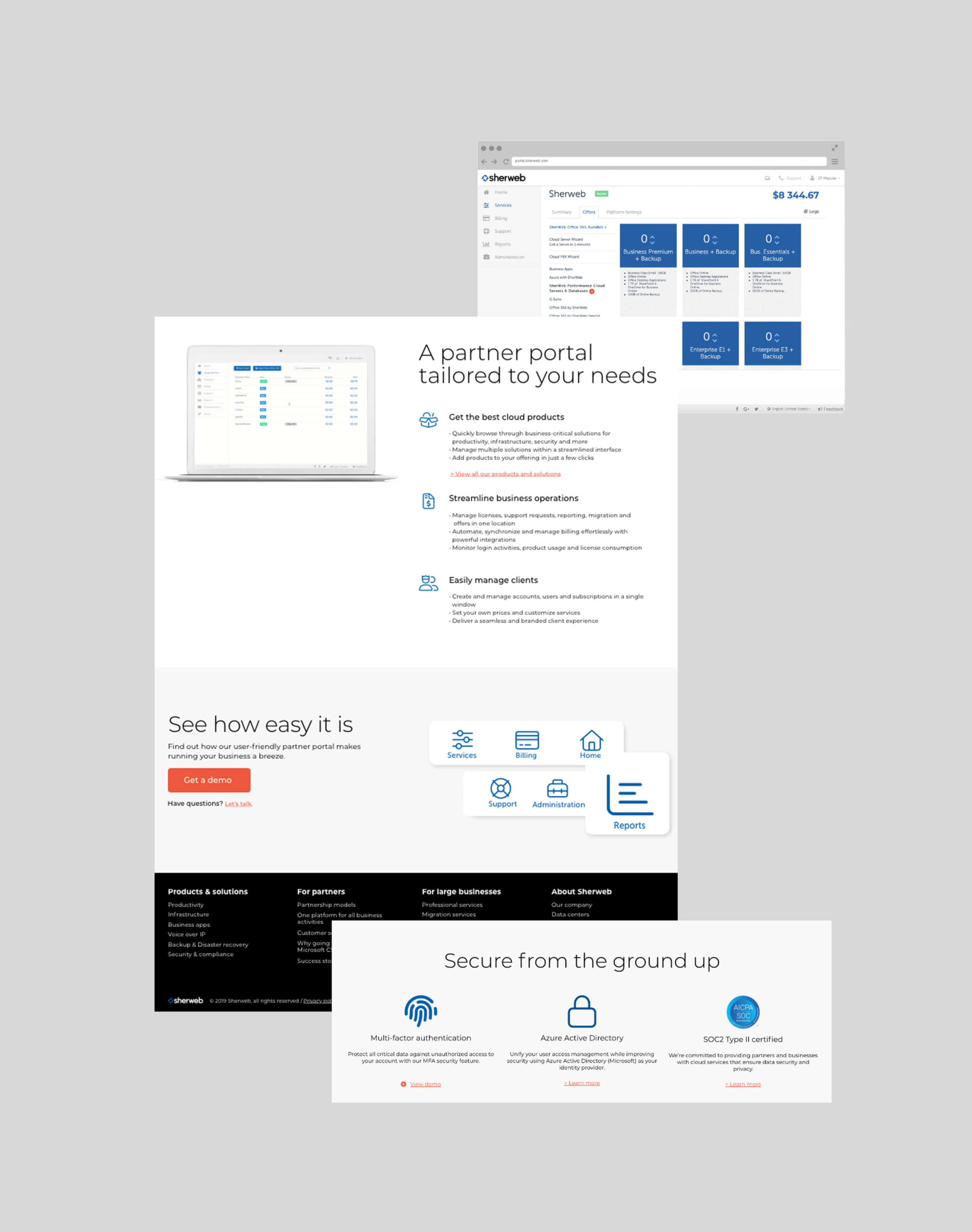 Design de actifs numérique, design de pages web pour le site web de Sherweb, design de bannières PPC. Suivi des brand guidelines tout en appliquant un style avant coureur.